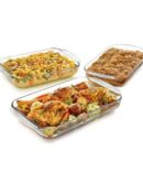 3 Piece Transparent Glass Casserole Baking Dish Set